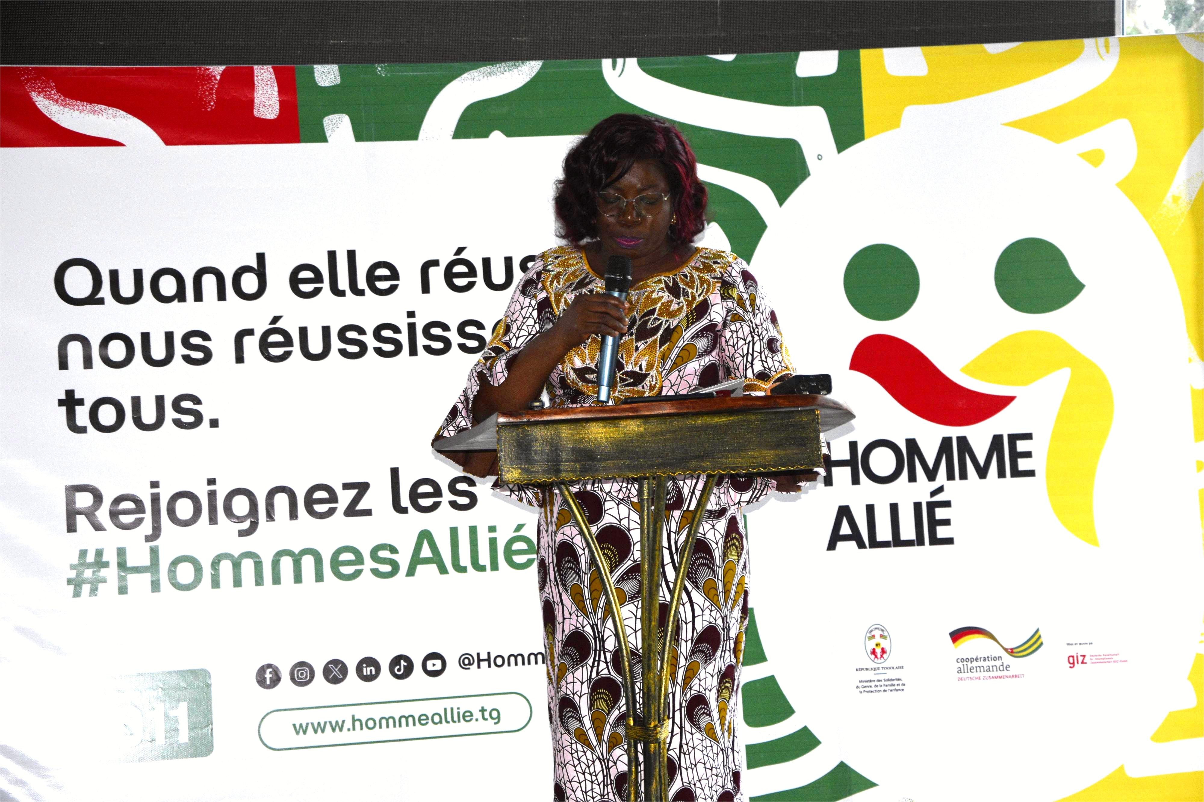 Représentant Madame la ministre des Solidarités, Monsieur Philippe YODO a mis en avant la portée de cette campagne au Togo et a lancé un appel à la population : « La construction d’une société équitable nécessite l’engagement de tous, c’est la raison pour laquelle le Gouvernement, sous la houlette du Président de Conseil, SEM Faure Essozimna GNASSINGBE, s’attache du prix aux valeurs familiales et accorde une importance particulière aux actions de promotion et de l’égalité de genre. La masculinité positive constitue un pan important dans ce programme gouvernemental qui ne serait se concrétiser sans la participation active et l’engagement des hommes aux cotés des femmes. Soutenir la femme ou la jeune fille pour qu’elle brille n’enlève rien à l’homme ou au jeune garçon. Au contraire, cela renforce l’harmonie familiale et la cohésion sociale. C’est un investissement dans notre avenir collectif. Je lance un appel à tous les hommes du Togo : rejoignez ce mouvement ! Devenez des » hommes Alliés « , et contribuons ensemble à créer un environnement où chaque femme et chaque fille, peut réaliser pleinement son plein potentiel professionnel et personnel ! ».